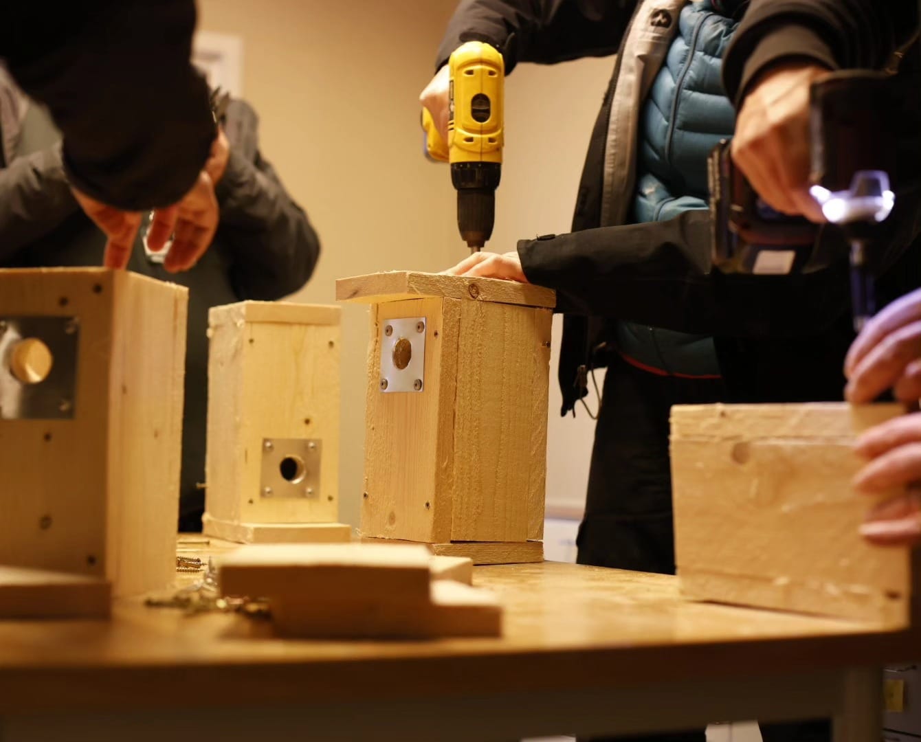 Ympäristökuulumiset 7. & 8.2.2025: Satakunnan Geokätköilijät ry. ja Suomen Luonnonsuojeluliiton Rauman seutu ry. ovat järjestäneet viime vuonna pariinkin otteeseen linnunpönttöjen rakennustalkoot. Pöntöt viedään metsään 15. helmikuuta. Sopiva paikka on löytynyt Petäjäksestä, kertovat Leena Haapio-Lehti ja Saara Haaslahti. (kuva: SGRY)